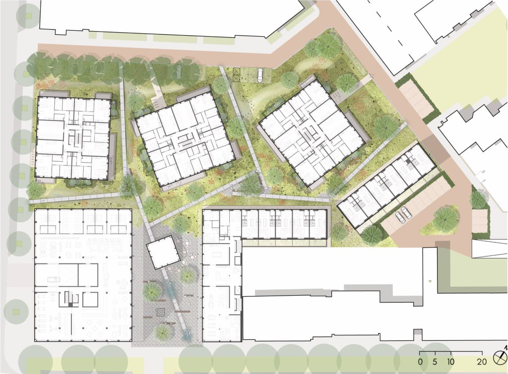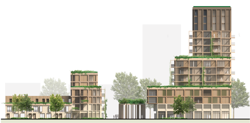 - Recreëren: 50 middenhuur appartementen en 104 koopwoningen in laag, midden en hoge segment