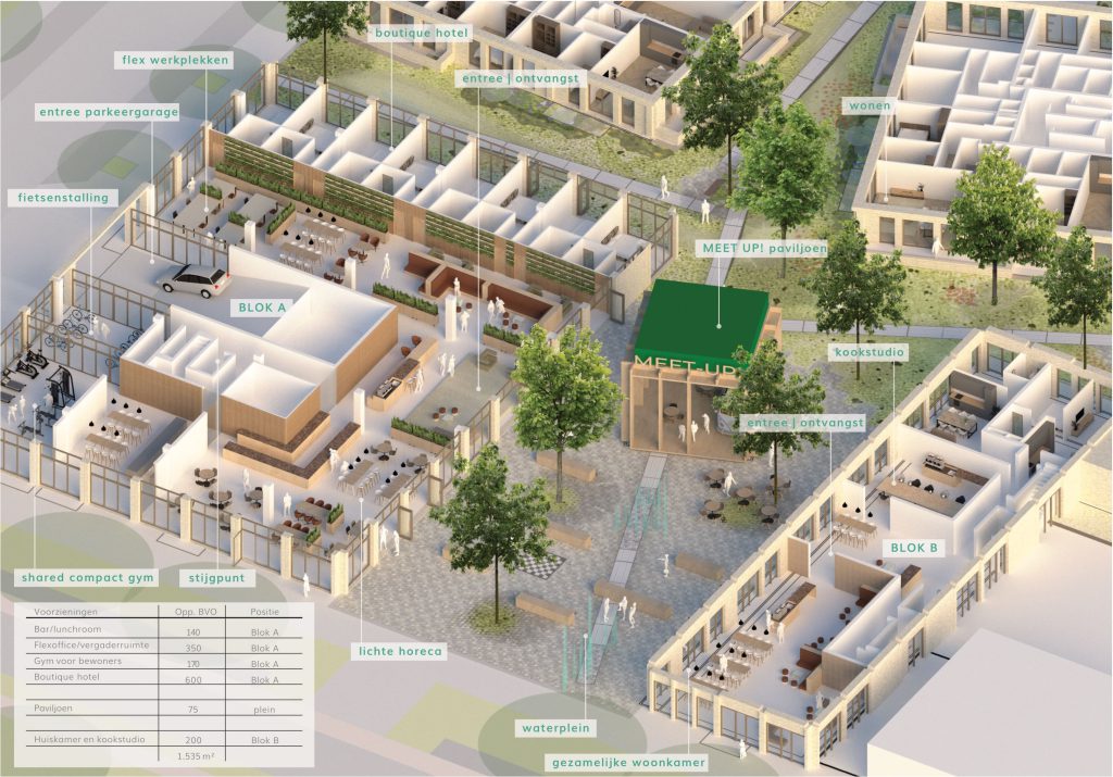 Er is een inclusief, gezond en veilig buurtschap voorzien waarin ontmoeten en wonen voor verschillende doelgroepen centraal staat. Jong, oud, zorgbehoevend of niet, voor dergelijke doelgroepen is volop ruimte in MEETUP Oss!